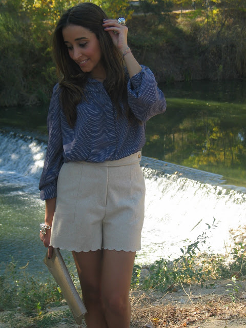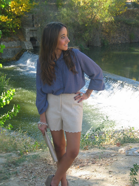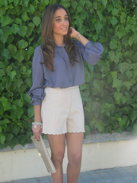 Qué monada de blusa y de shorts!!! siempre he querido unos así con el bajo en onditas.. Y a ver si encuentro también una blusa de topos, porq me está costando encontrar una q me guste! a ver si me paso por Zara :)