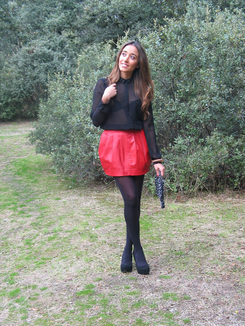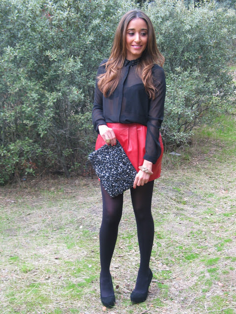 Me encanta, tu look es impecable! yo todavía no me he atrevido con las transparencias, aunque cuando las veo puestas me encantan! red&black es potente, me gusta!
