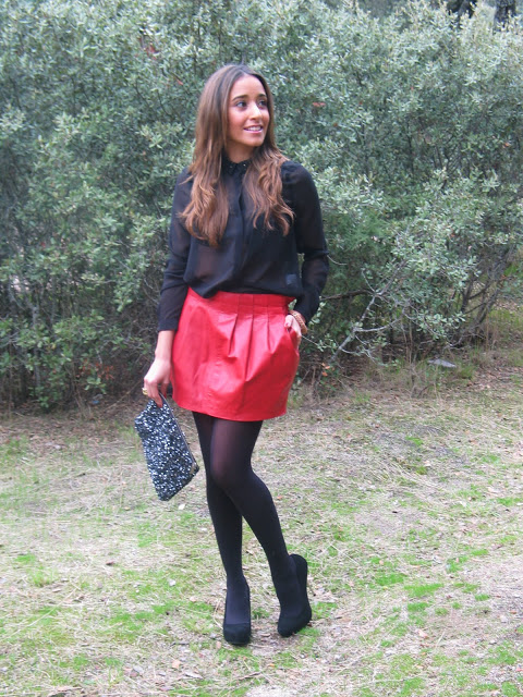 Precioso el look!, me encanta la combinación de rojo y negro, es una de mis preferidas, la falda es ideal !!