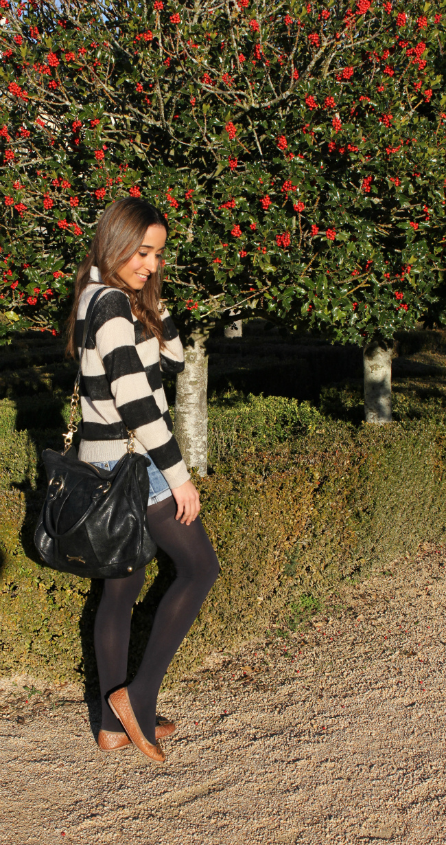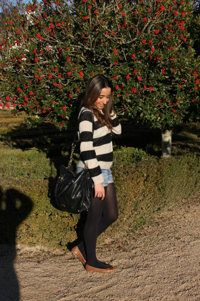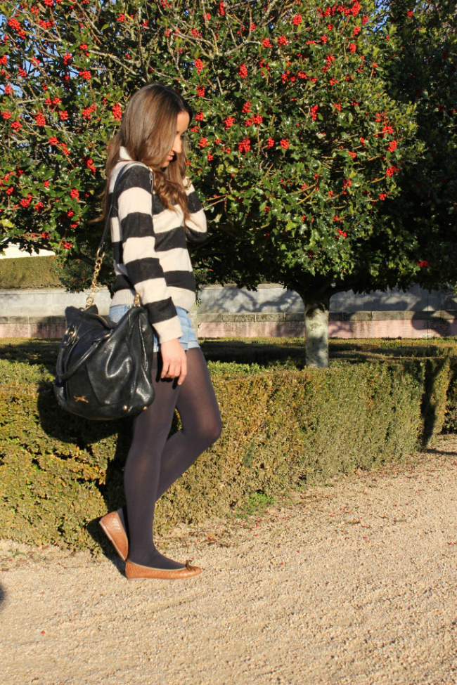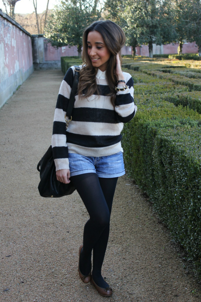 Me encantan los shorts con medias tupidas, además el jersey es muy mono! un besoooo
