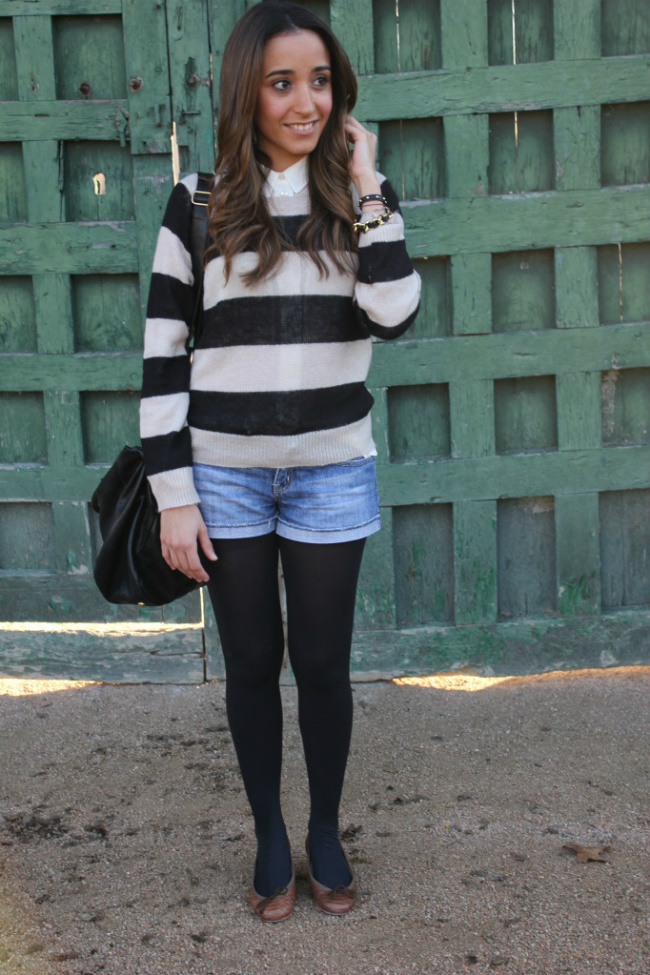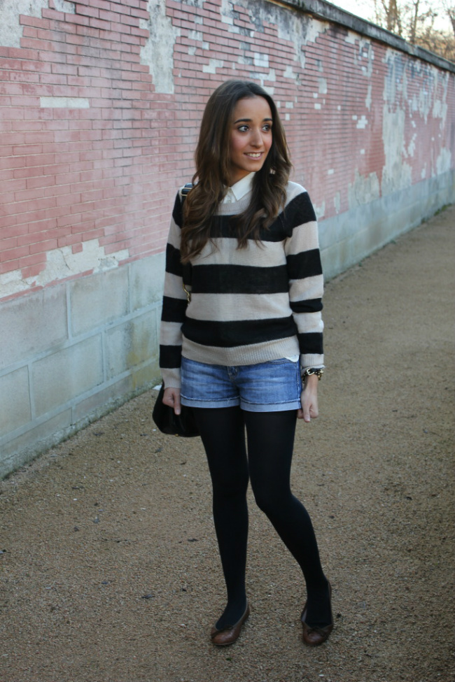 Yo soy muy de short con medias tupidas para el invierno también!Me encanta el toque camel de las bailarinas.