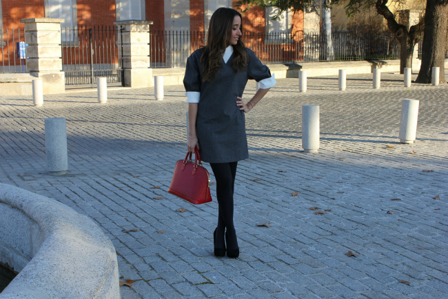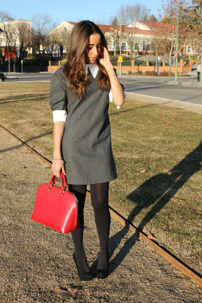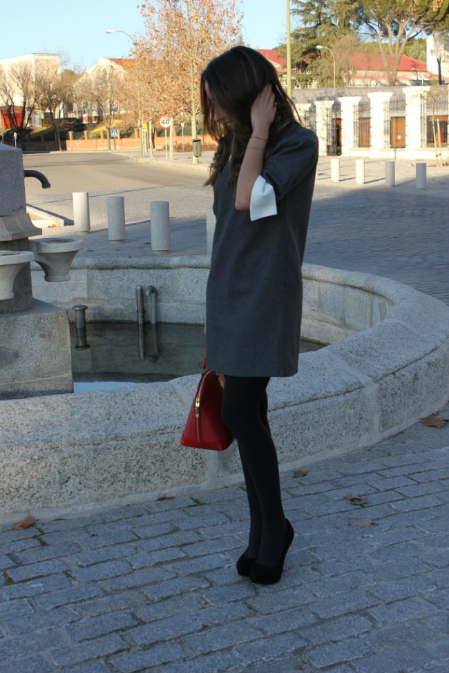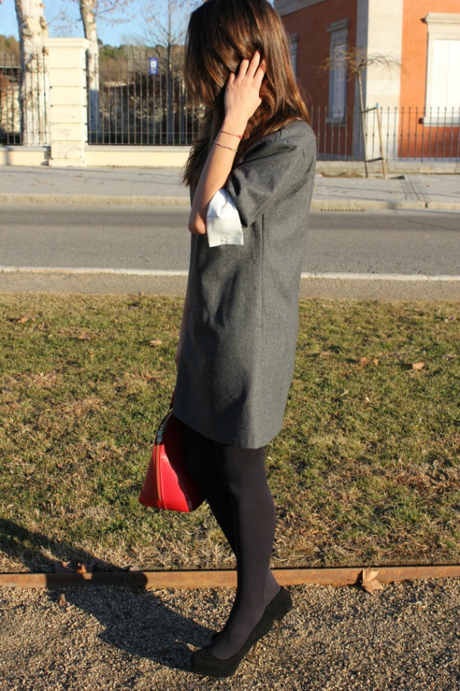 Además el toque del bolso rojo, combinado con el gris queda muy bien.