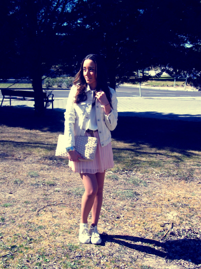 Cómo vienen los plisados, yo hace poco me compré una faldita con lunares, son una monada. Un look muy dulce, me encanta.