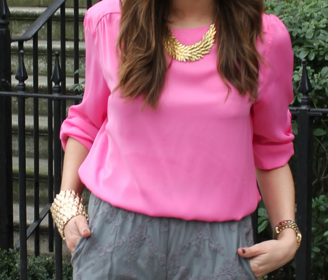 Hoy os enseño un look muy sencillito. En esta ocasión, combiné unos shorts de encaje gris, con una blusa en rosa flúor. Me encanta la tendencia de los colores flúor, sobretodo en suéteres, blusas y accesorios, ya que dan mucha luz a los looks.
