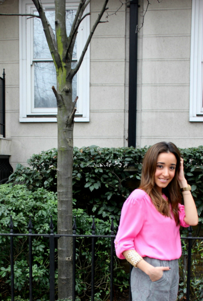 me gusta muchísimo el look! La mezcla de rosa y gris es genial y el collar me encanta <3