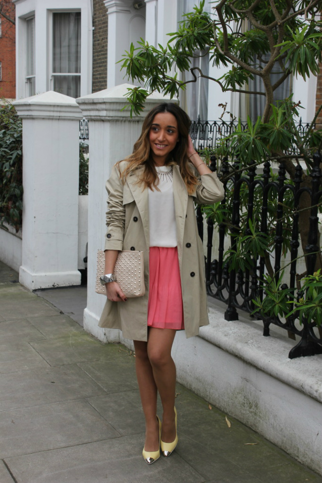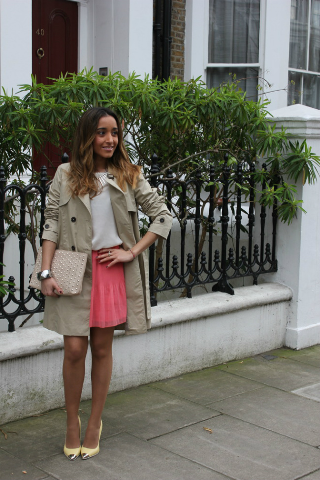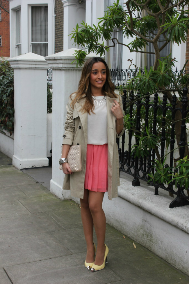 Para mi el trench, es un básico de entretiempo. Es perfecto, para esos días en los que hace frío y calor. Lo combiné con prendas en tonos pastel, y con los zapatos amarillos de Zara, que cómo ya os dije no me voy a quitar en toda la temporada.