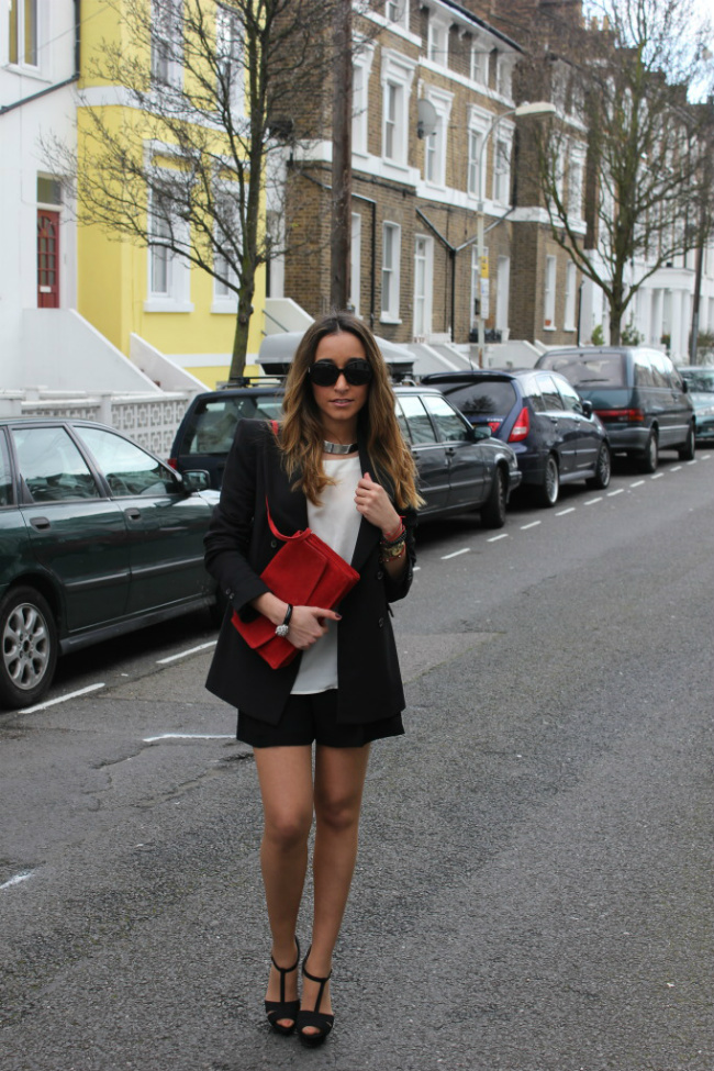 Es q estás guapísima con esa combinación blanco/negro q nunca falla! M gusta sobre todo los shorts y q l hayas dado una nota d color con el bolso rojo, perfecta!