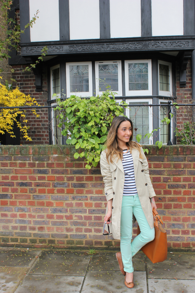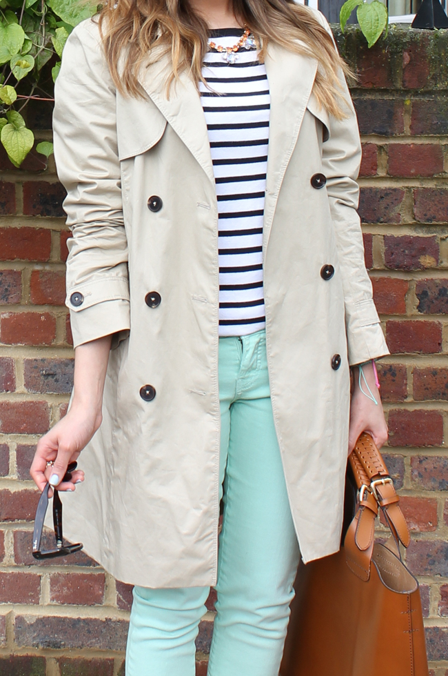Love mint with stripes! Great trench and love the bag! I've got the same one on my blog right now too! ;-)