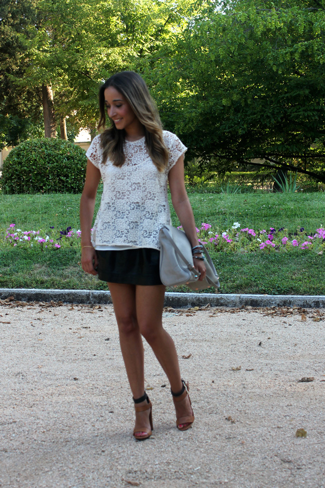 ResponderEliminarEstás preciosa!! Me encanta la combinación de encaje con cuero. Y las sandalias son chulísimas. Un beso.
