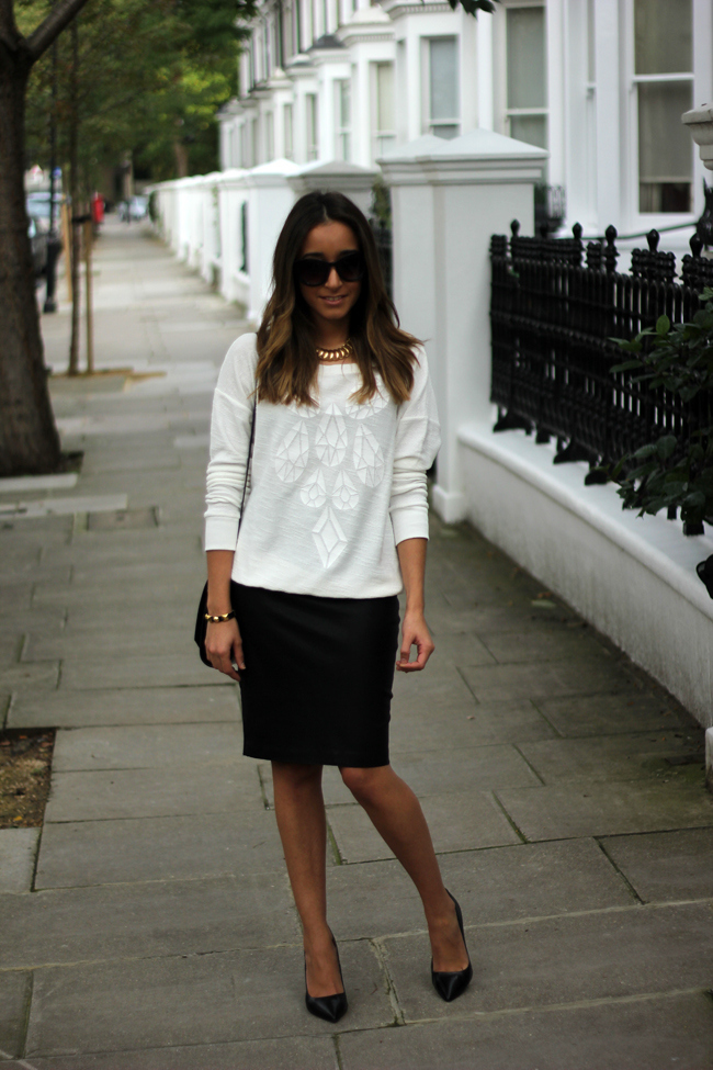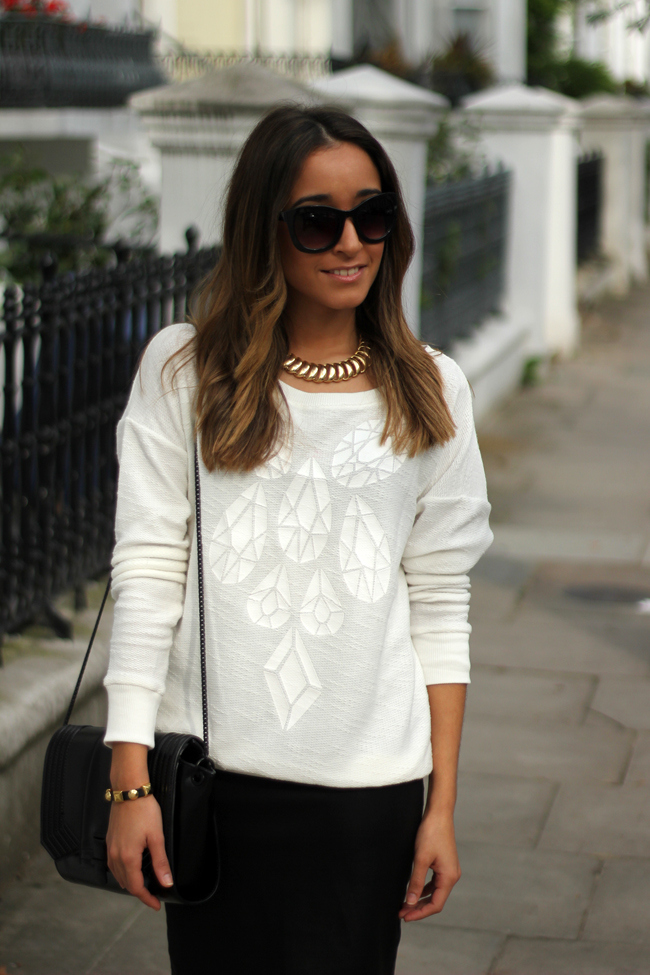 Hoy, ya os enseño fotos hechas en Londres. Nunca pensé que fuese a ponerme una sudadera, y aquí estoy combinándola con una falda lápiz que llevaba mucho tiempo buscando. Es una pena que no se vea bien lo bonita que es la parte de atrás de la falda, espero que en las próximas fotos que os enseñe con esta falda se vea mejor.