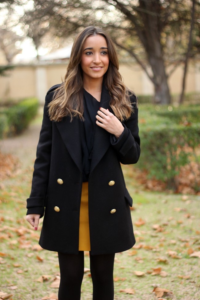 me encanta el mostaza combinado con negro!! ese abrigo de Zara tiene que ser mio!!jjajja!!