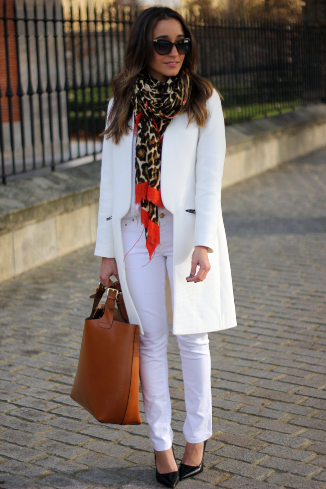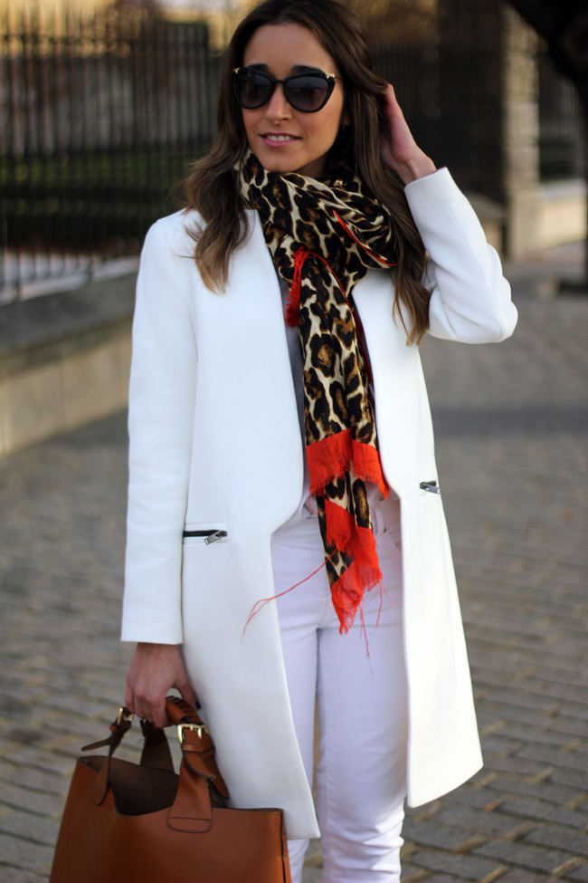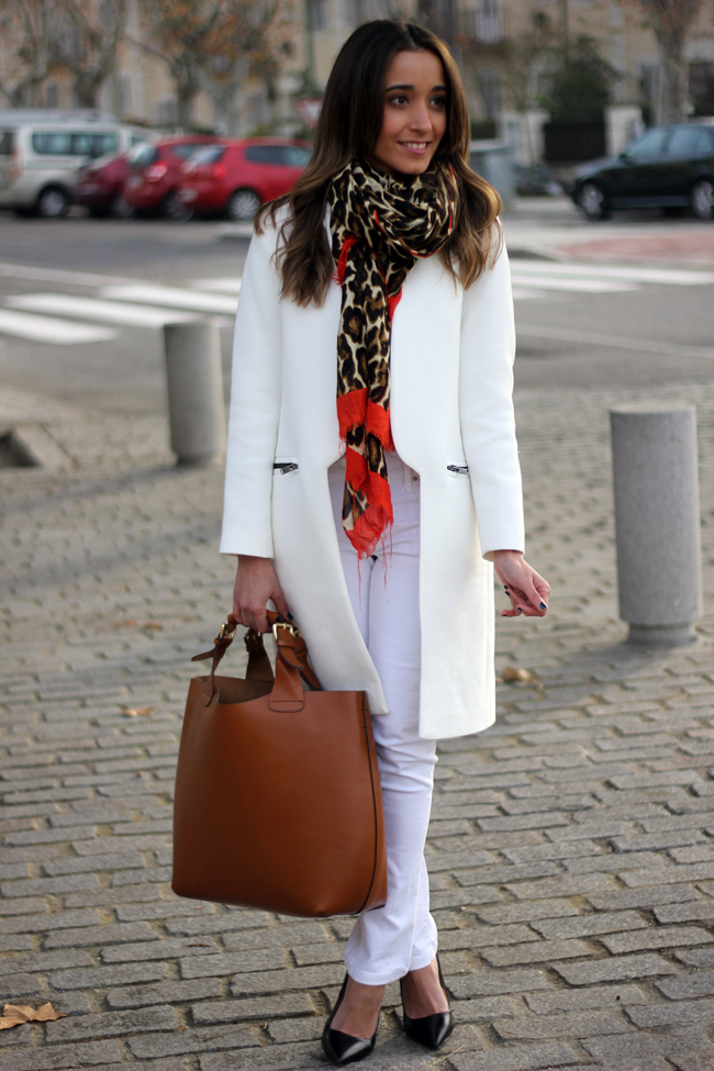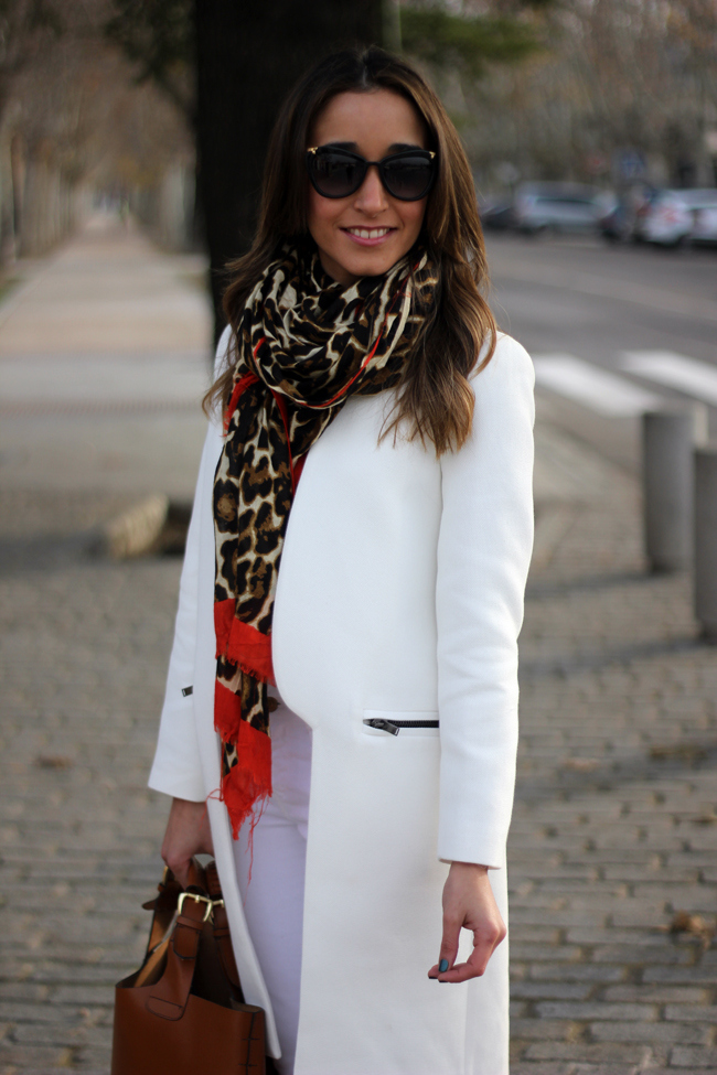 Es ideal el look totalmente en blanco, añadiendole algun detalle. El abrigo me encanta