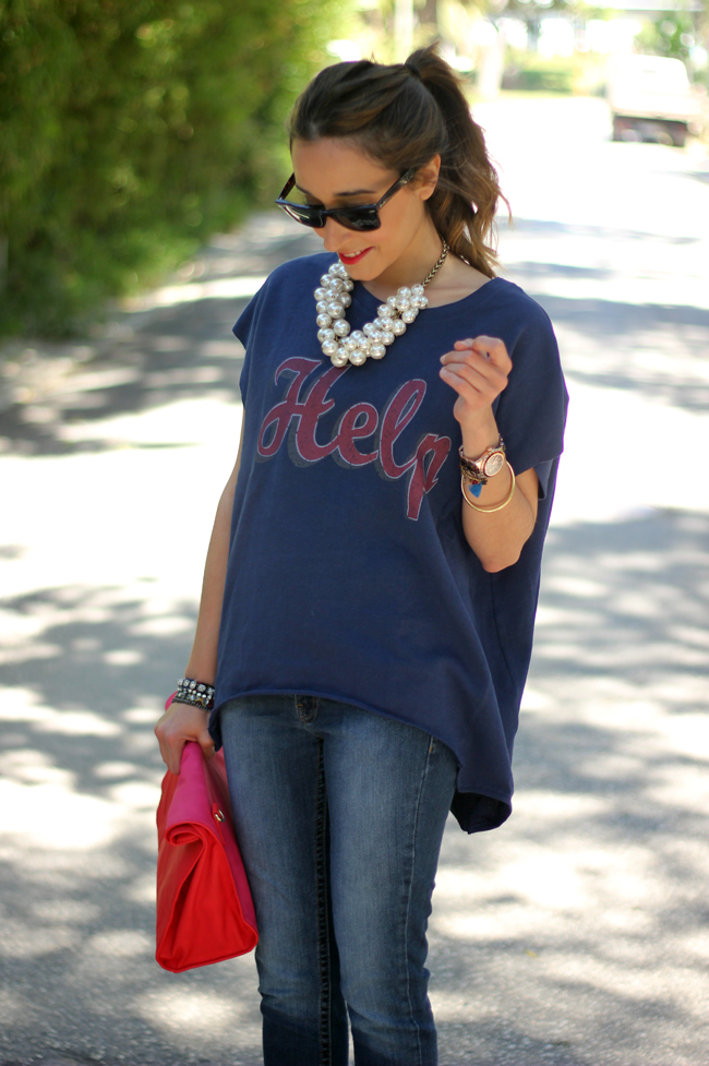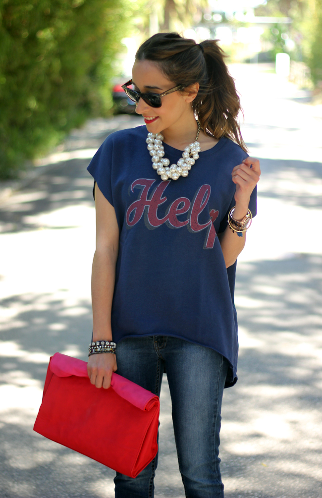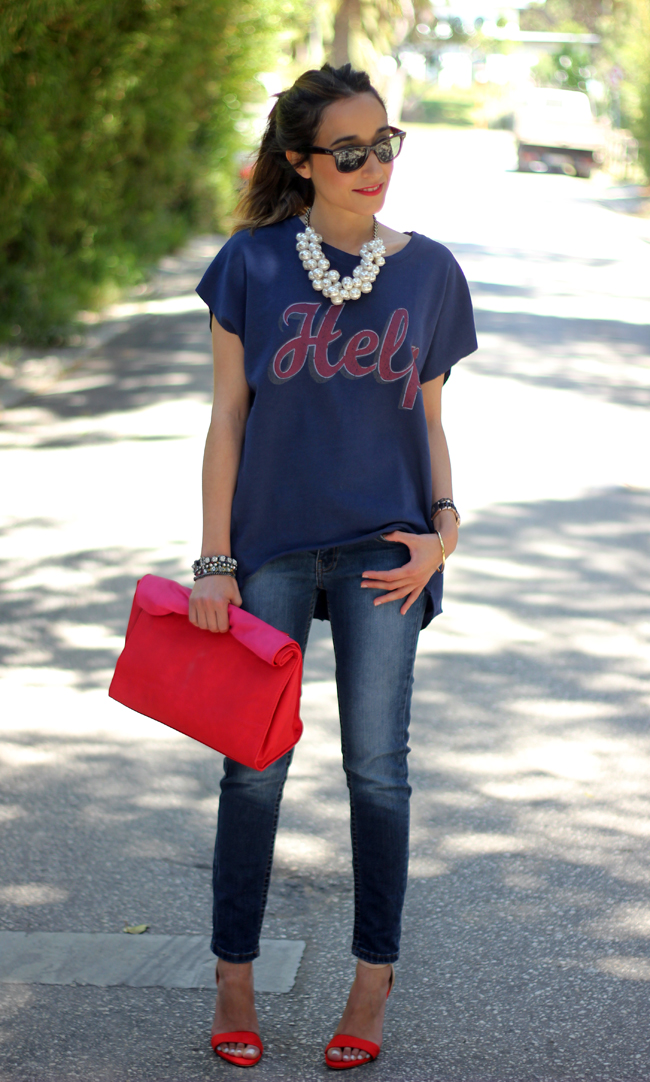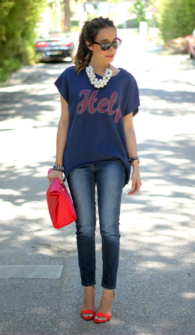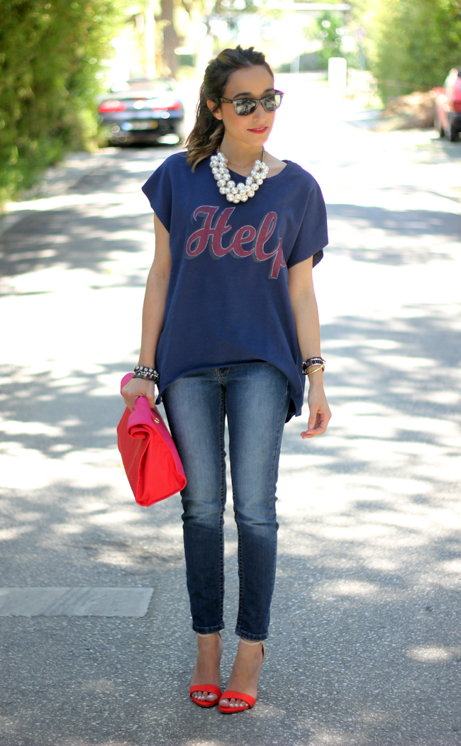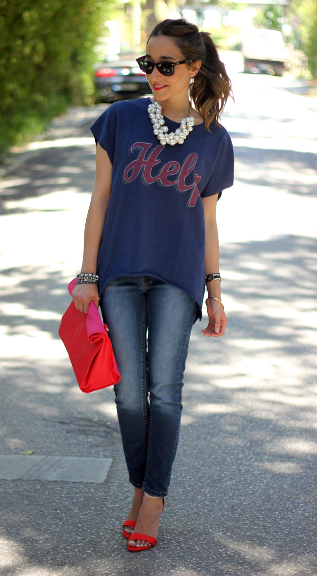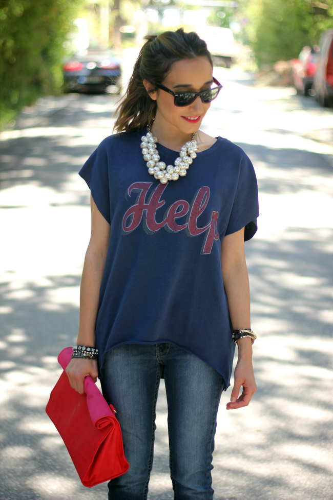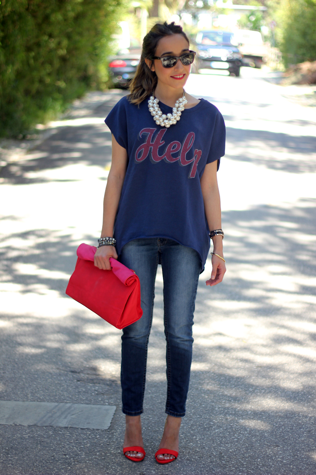 ResponderEliminarHola Lara. me encanta el look que nos traes hoy. La camiseta es super chula y el collar ideal por que además es super combinable y ponible. El clutch es una monada.