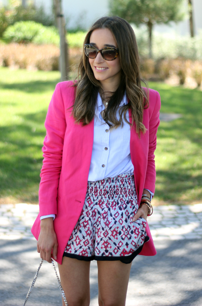 The print of these shorts is indeed very pretty. Love the combo with the blazer. Hot pink looks really nice on you.