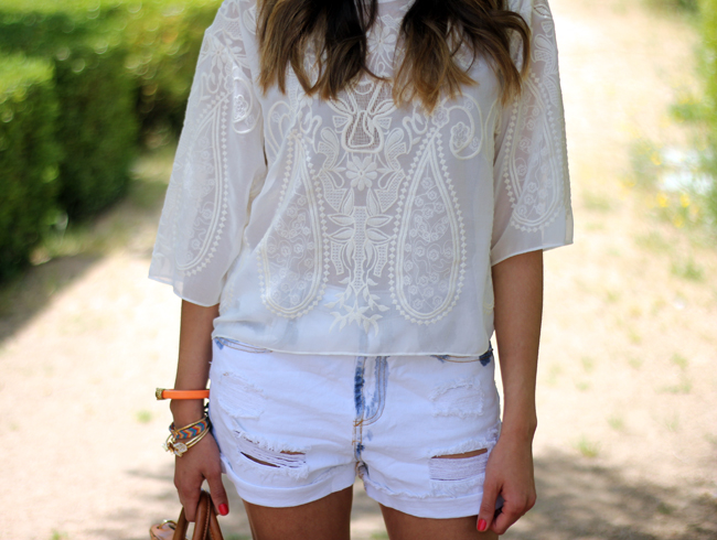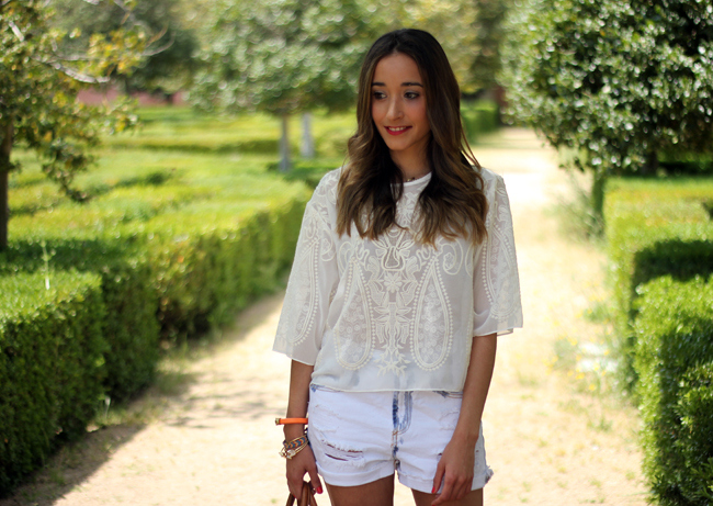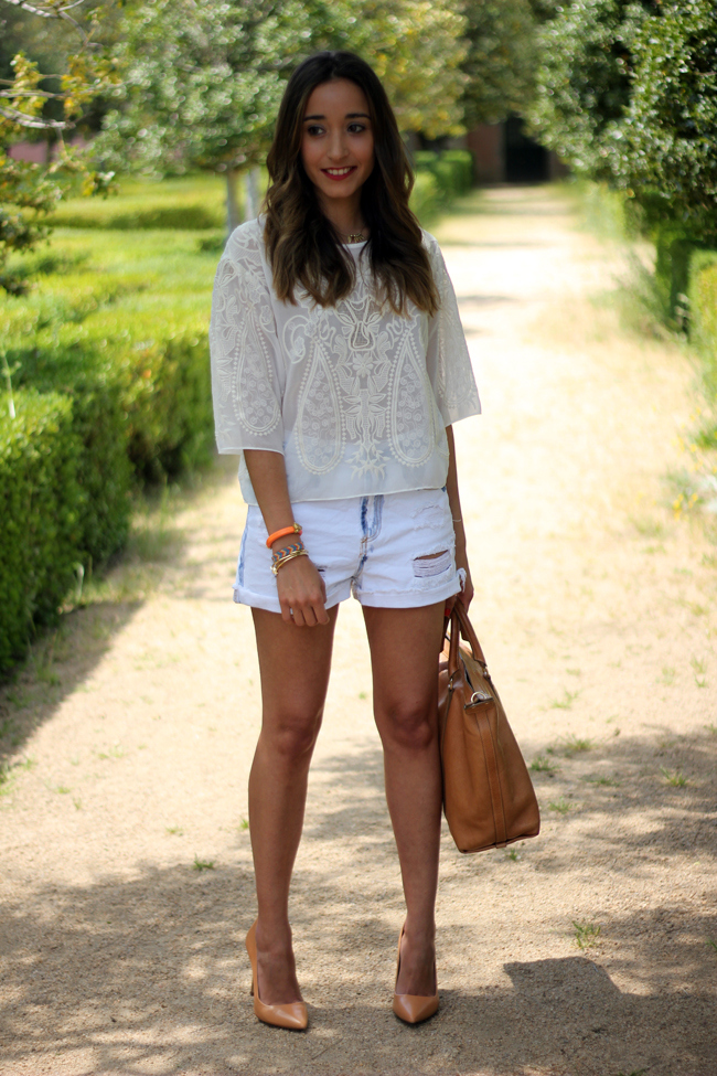 I´ve been looking for a denim shorts that weren´t very short, and with which I feel comfortable, and I finally found them. I ´ve combined them with a embroidered white blouse and brown accessories.