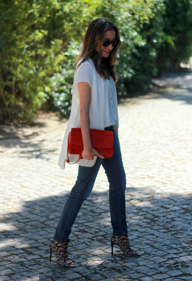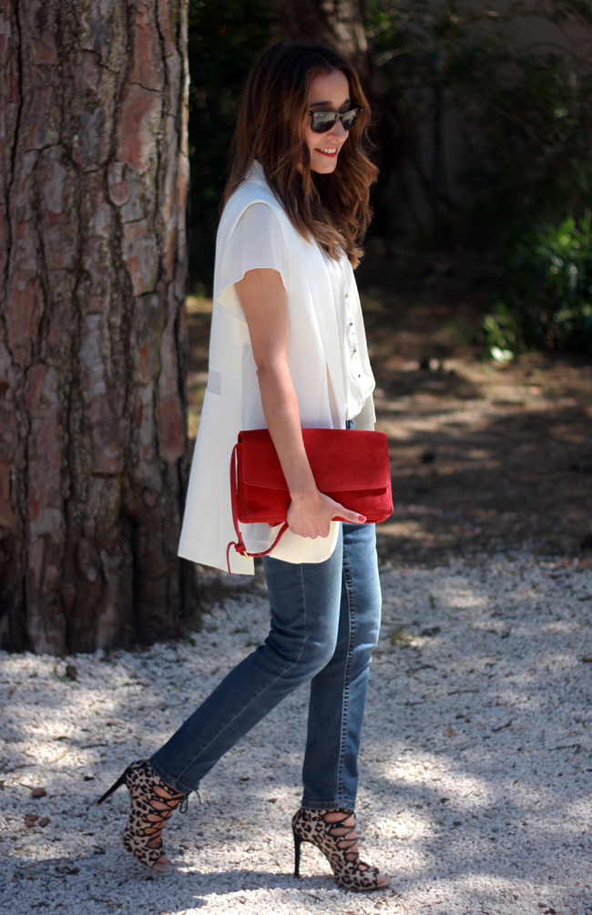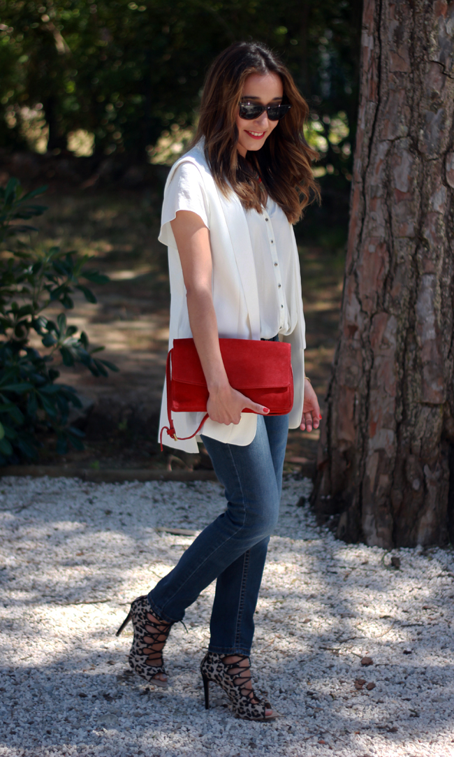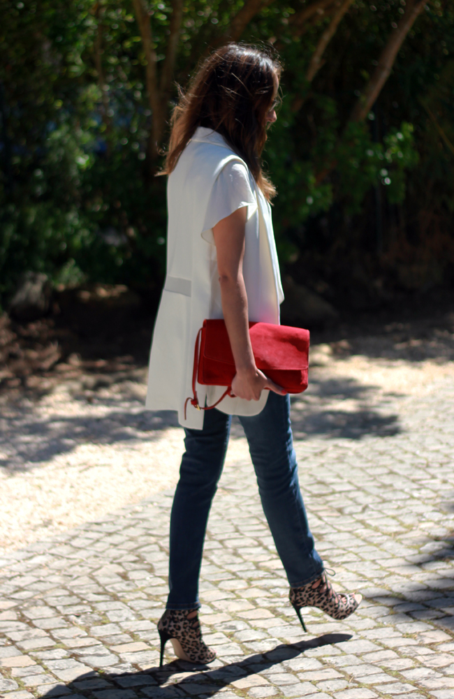 Seeing this white vest yesterday in the closet, I remembered that I haven´t wore it a lot, and I decided to give it a try. I combined it with a white blouse and jeans, and with a red bag and animal print shoes.