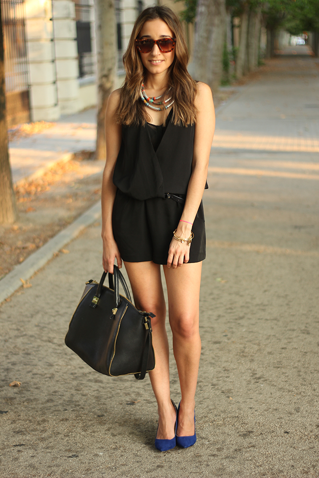 Today I leave you with a quick post, after spending a few days in Madrid I go to Lisbon, and I have really wanted to get there for spend the weekend at the beach. The outfit that I show you today is simple and comfy, I combined a black jumpsuit with a blue shoes. This jumpsuit is ideal for these hot days that has done, is very comfortable and cool.