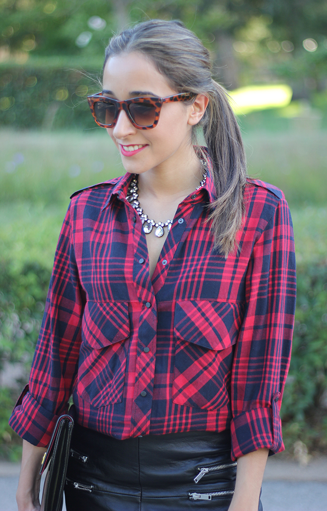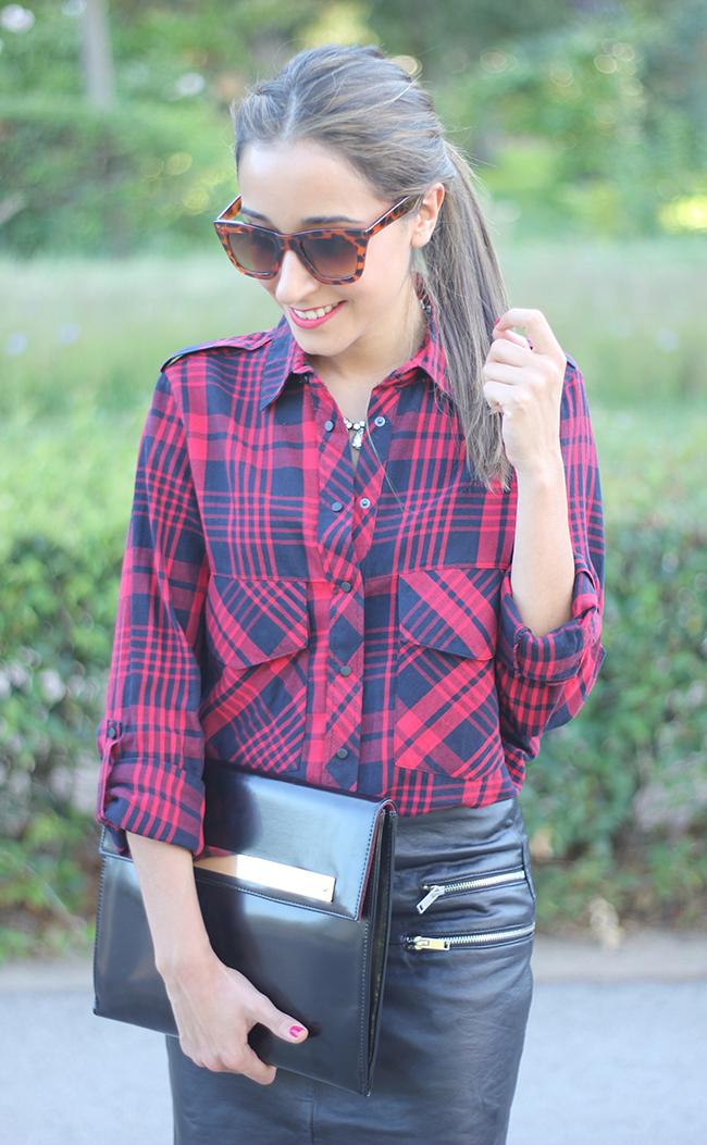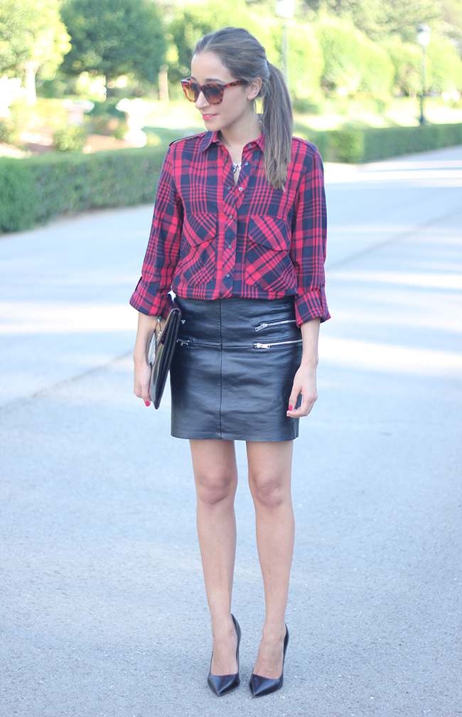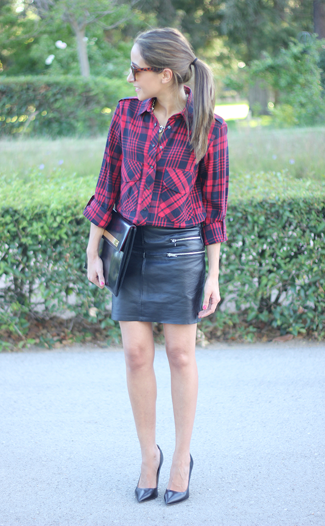 Today I show you a look in which I combined a leather skirt with a plaid shirt. I love this skirt, I´m sure you are going to see me a lot with this skirt.