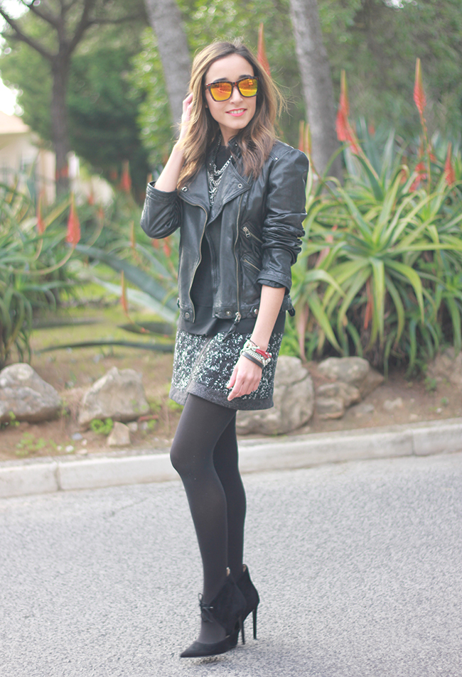 Un look rock pero con mucho mucho glam. Me encanta, estás fabulosa. La falda es preciosa ♥ Un besito