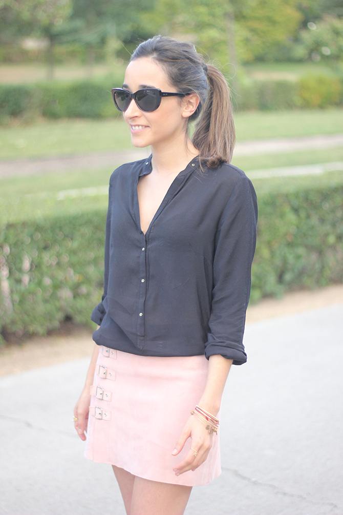 Lately I love super simple outfits like the one I show you today in which I combined a pink skirt with a black shirt and accessories in the same color. Don´t miss tomorrow's post because it will be a great giveaway.