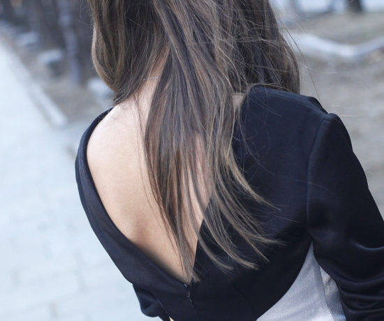 En este look combiné un precioso vestido granate que tiene la falda plisada, con una bufanda súper suave con estampado príncipe de gales y un bolso negro. Este tipo de looks son de mis favoritos.