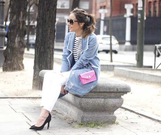 Happy Friday !! Outfits like the one I show you today have become into my summer uniform, they are super comfortable and perfect for these hot days. For this particular one I chose a frilly striped shirt, it’s so cute. I combined it with ripped denim shorts, white Converse and a red bag. Hope you like it !!