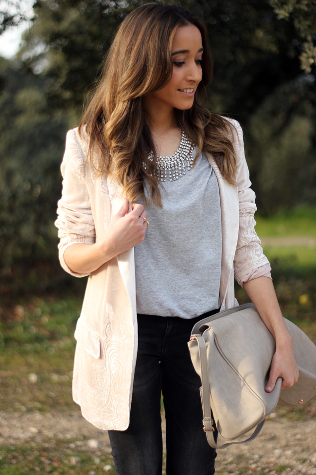 Another of my acquisitions in sales has been this velvet blazer, I think it was one of the clothes that had more discount in Zara. For a casual outfit, I combined it with a basic grey tee and  jeans.