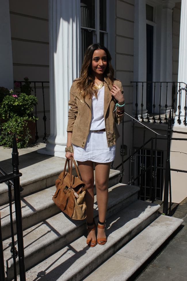 These white pants, you have seen in other post. Once combined it with the brown suede jacket (