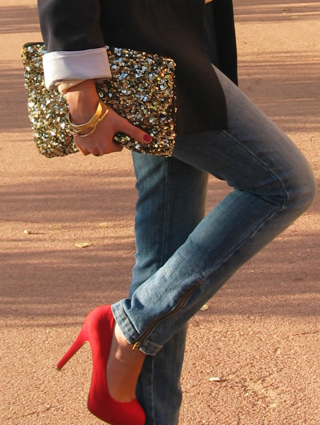 Today I leave a simple look, consisting of a blazer and jeans, a combination that never fails, and that to me is always very handy. What I like most about this look,are the red shoes, I love the splash of color they give.