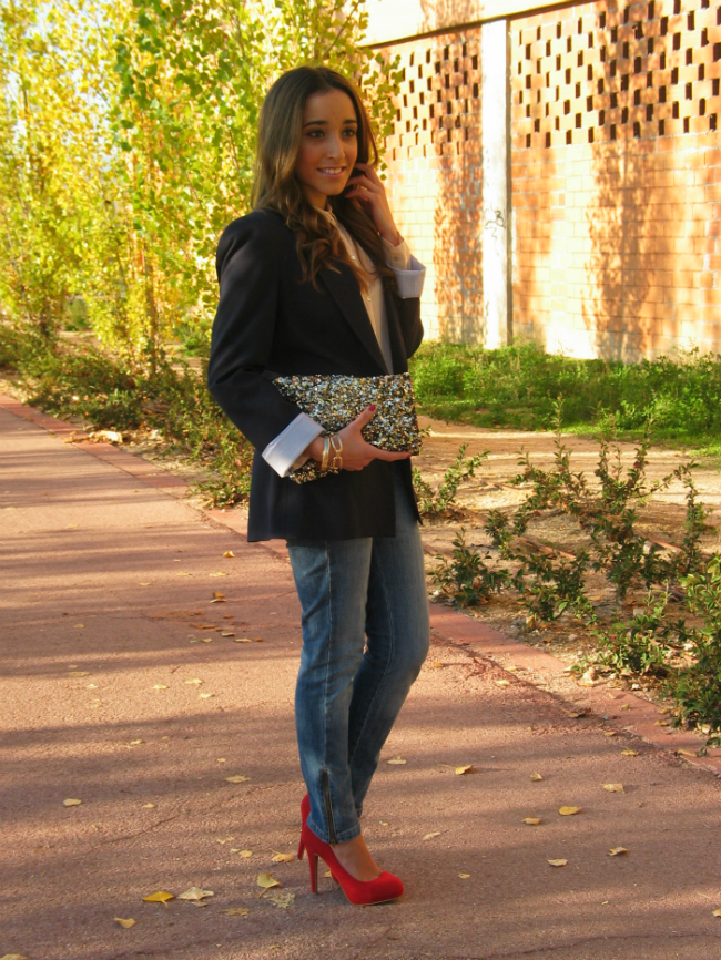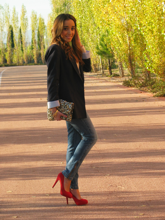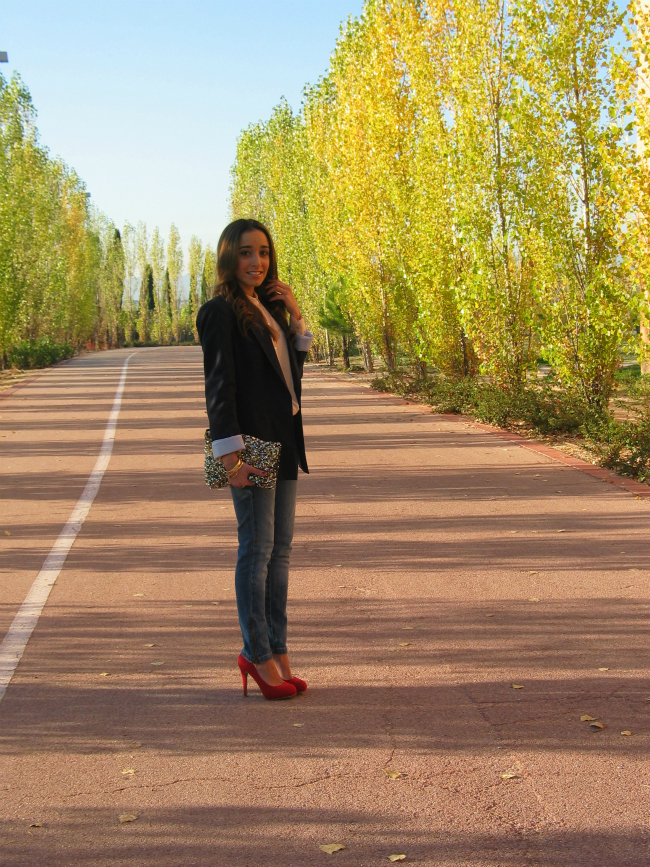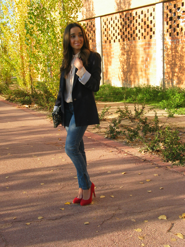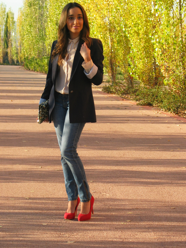 Hoy os dejo un look sencillo, compuesto por una blazer y unos jeans, una combinación que nunca falla, y que a mí me resulta siempre muy socorrida. Lo que más me gusta de este look, son los zapatos rojos, me encanta el toque de color que dan.