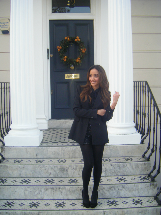 What I like about this look, is the mixture of knitted with paillettes, and the mixture of colors.