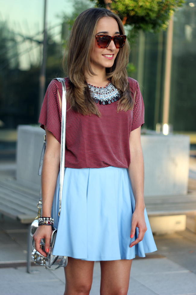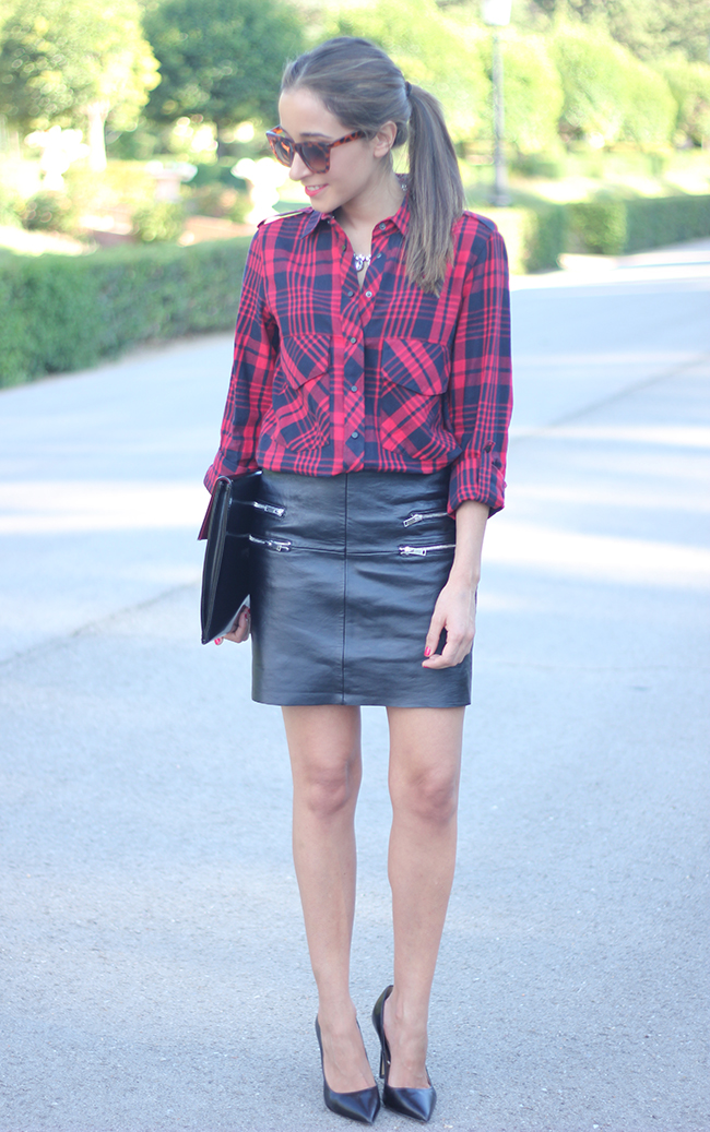 Today I show you a look in which I combined a leather skirt with a plaid shirt. I love this skirt, I´m sure you are going to see me a lot with this skirt.