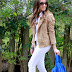 The combination of white with camel, is definitely one of my favorites. Yesterday I combined worn white pants, with a perfect camel suede, and to give it a touch of color, I chose a blue bag.